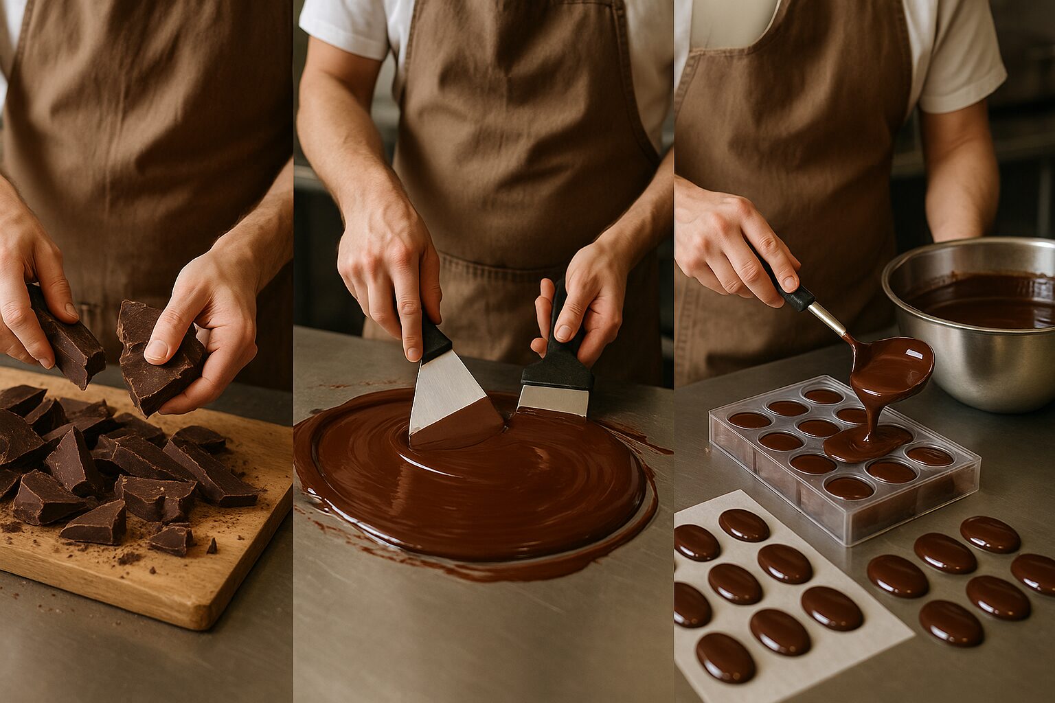 Técnicas para trabajar el chocolate y crear bombones artesanales.