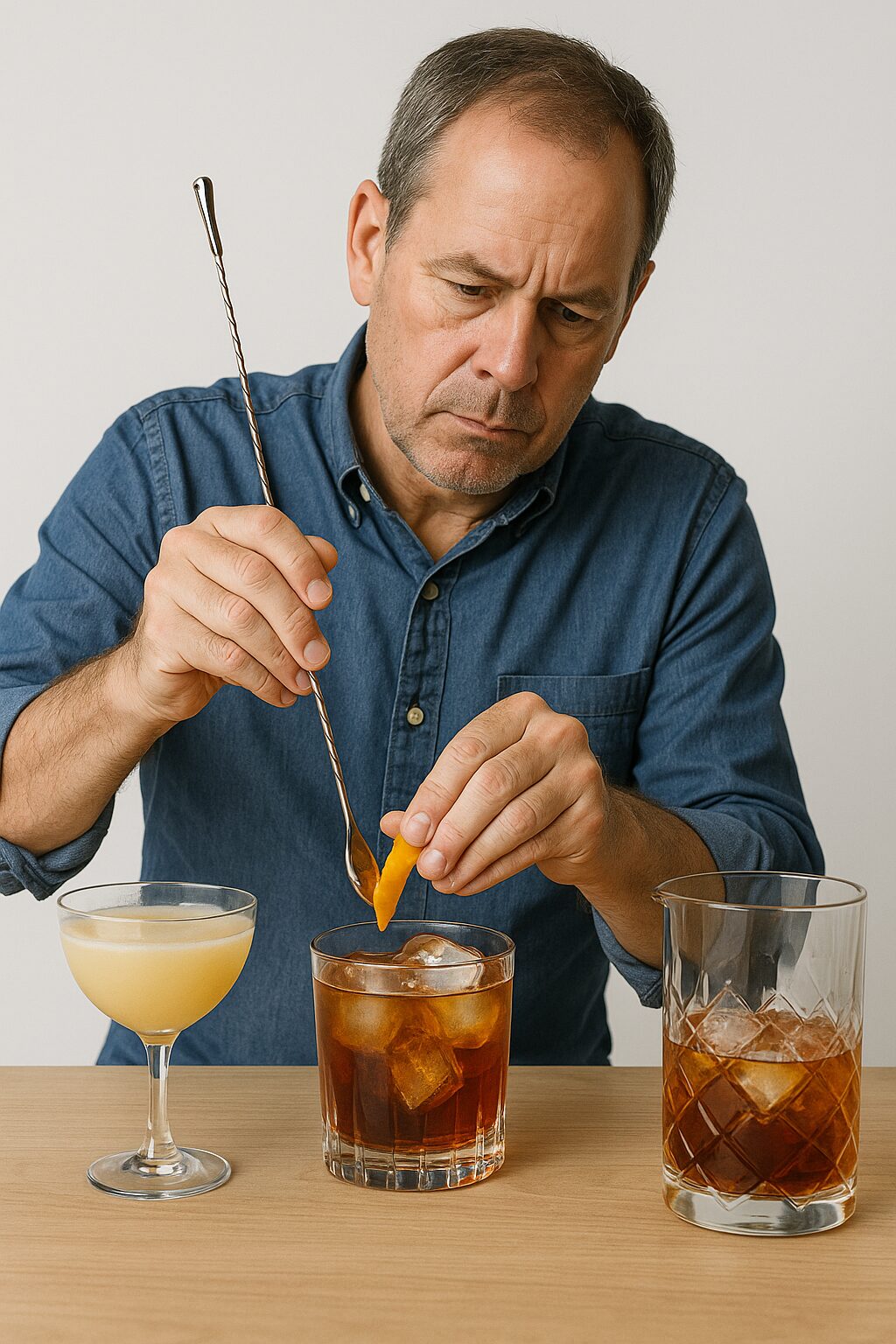 Preparación de cócteles clásicos y modernos, técnicas de mezcla y presentación.